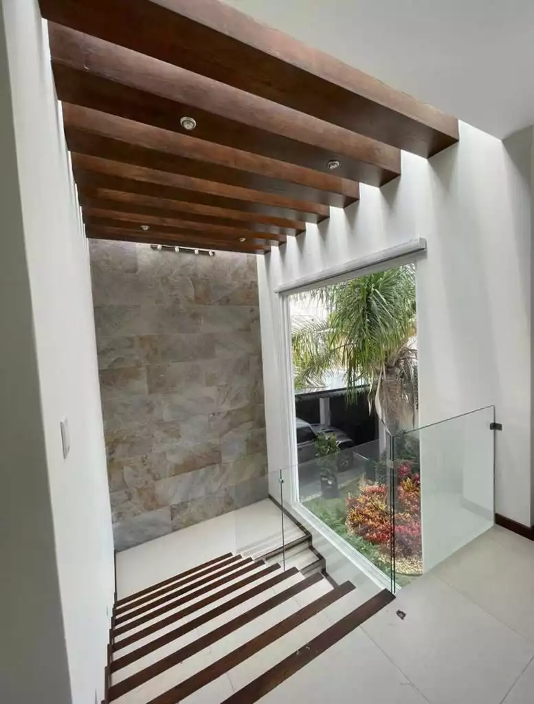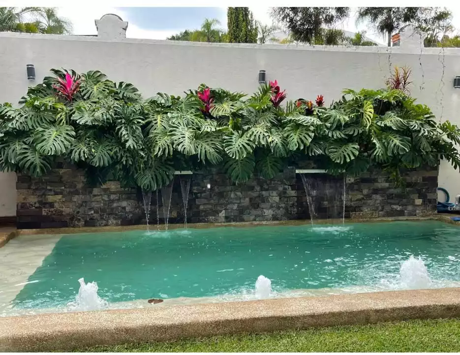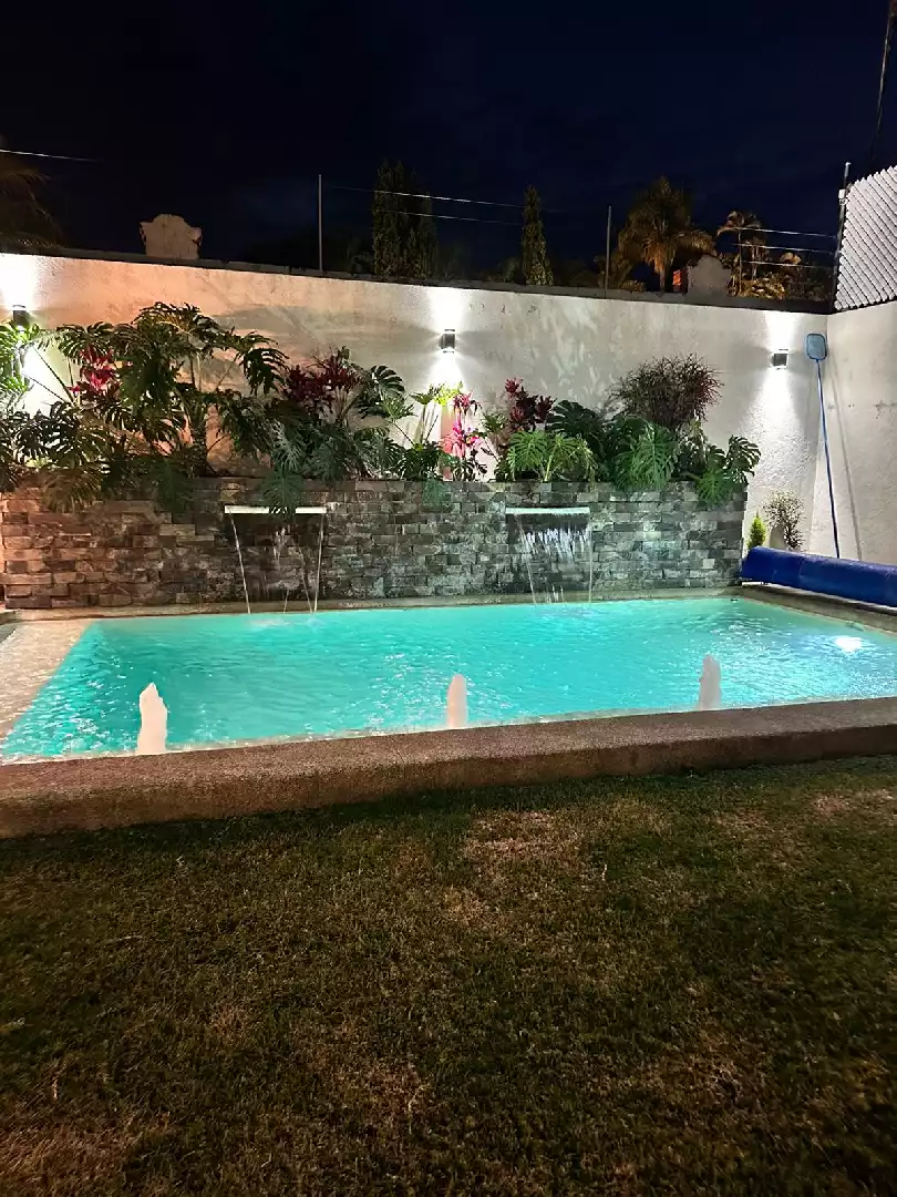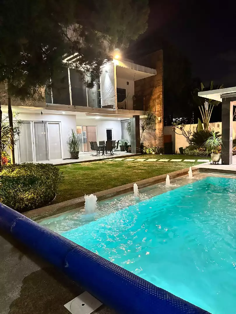 Además cuenta con: - bomba de calor para la alberca - sistema hidroneumatico - sistema de riego todo el jardín y jardineras - tanque estacionario con toma externa - electrificación perimetral - cámaras de circuito cerrado - iluminación luz indirecta en plafones de toda la casa - cisterna de 20 mil litros - cortinas traslúcidas y blackout - iluminación cálida en exteriores
