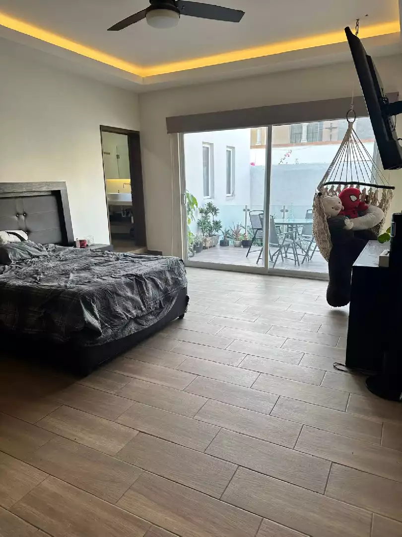 Planta alta: - recámara principal con vestidor amplio, baño completo, terraza y balcón - otras 2 recámaras con baño completo, terraza y closet