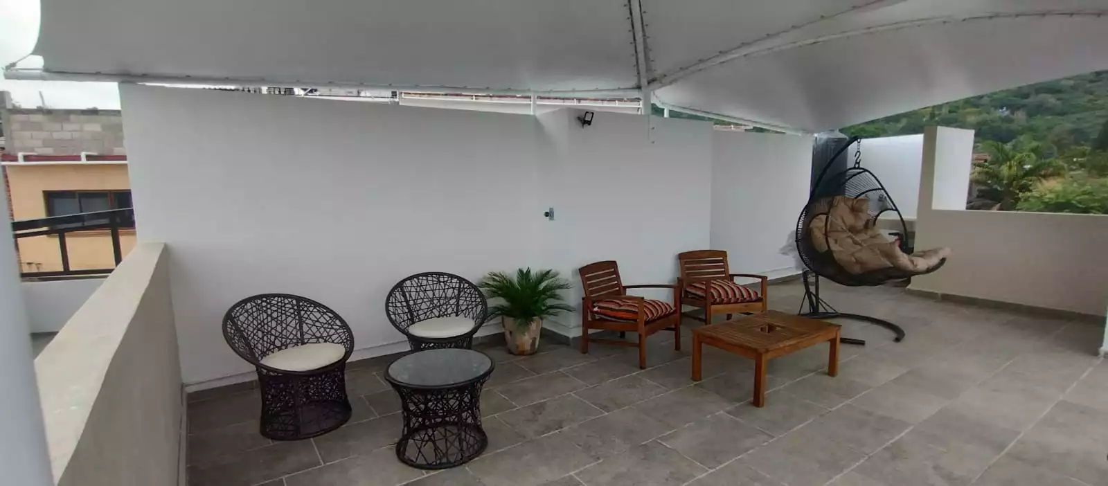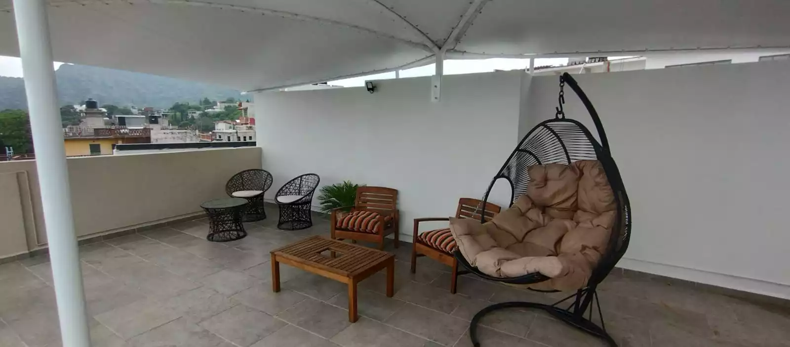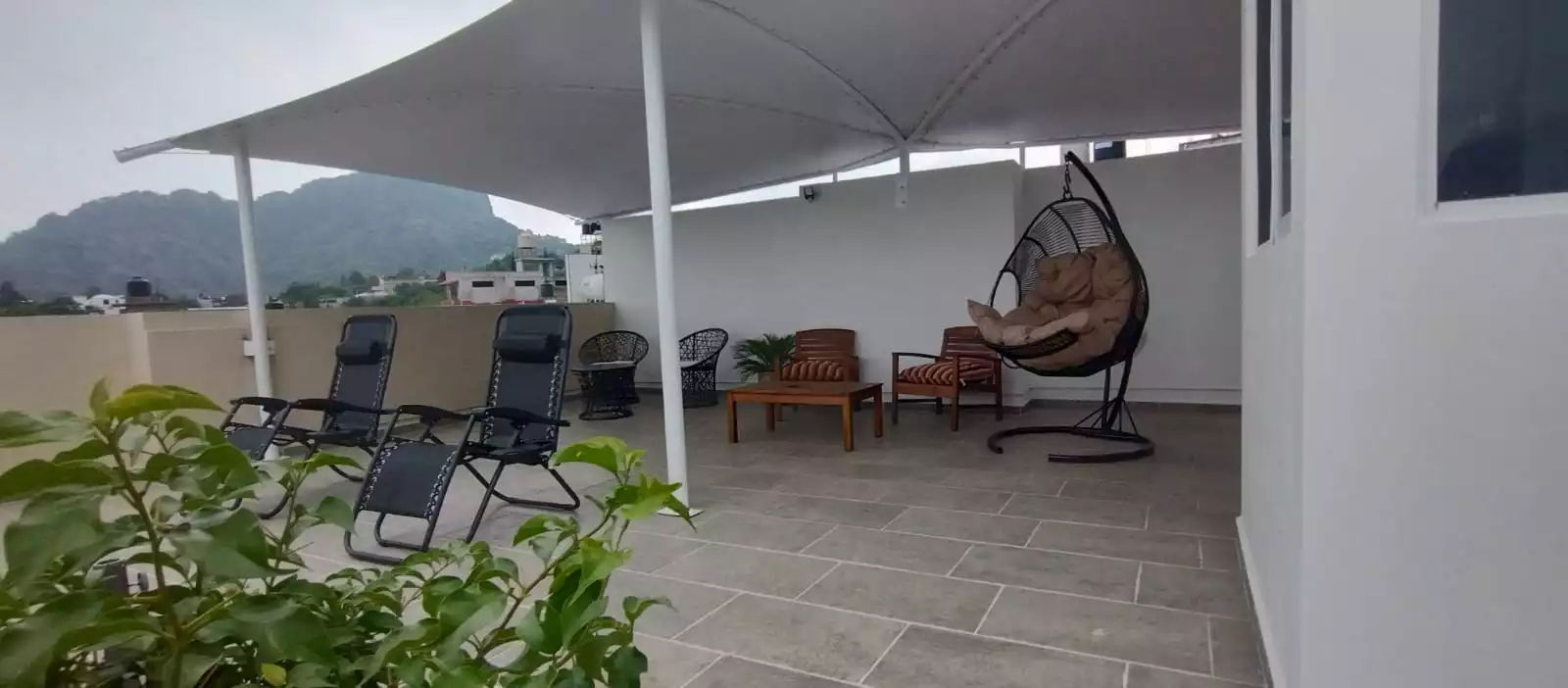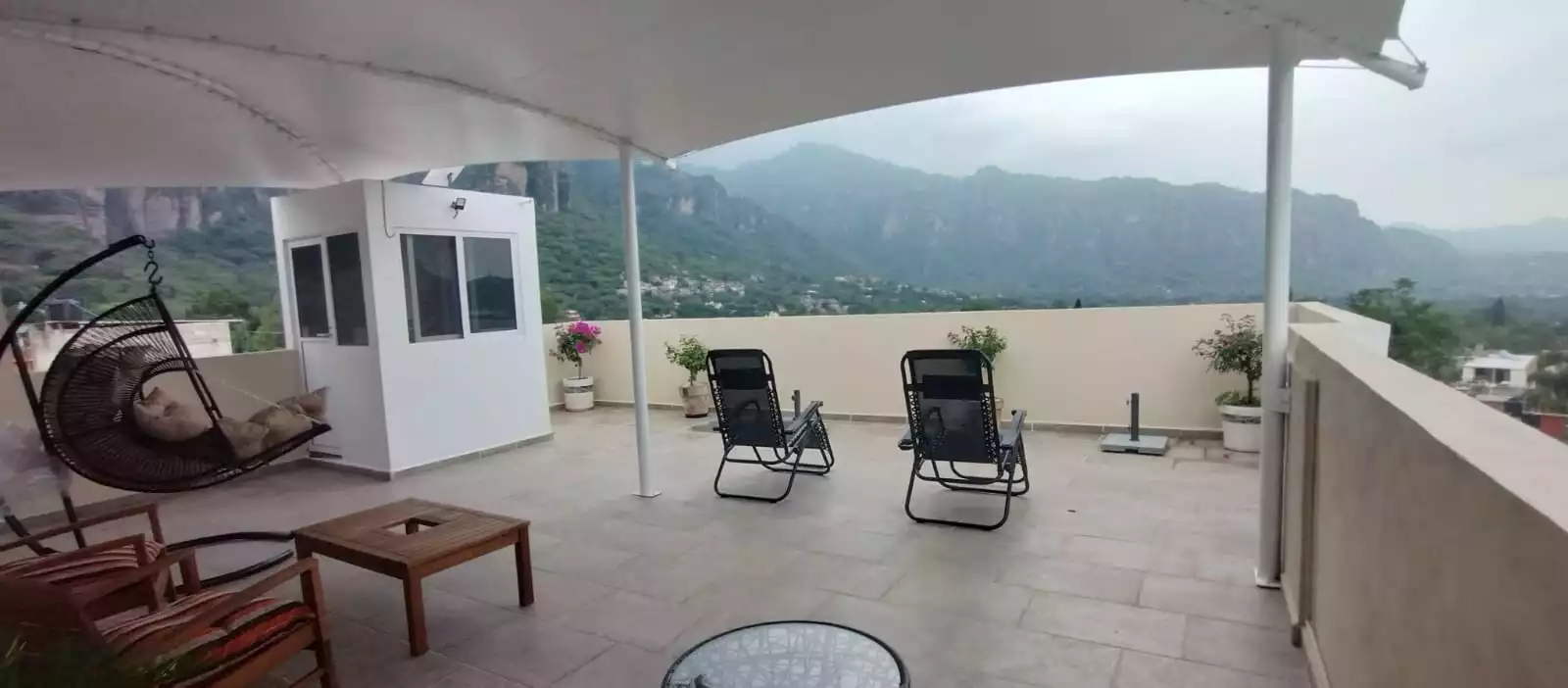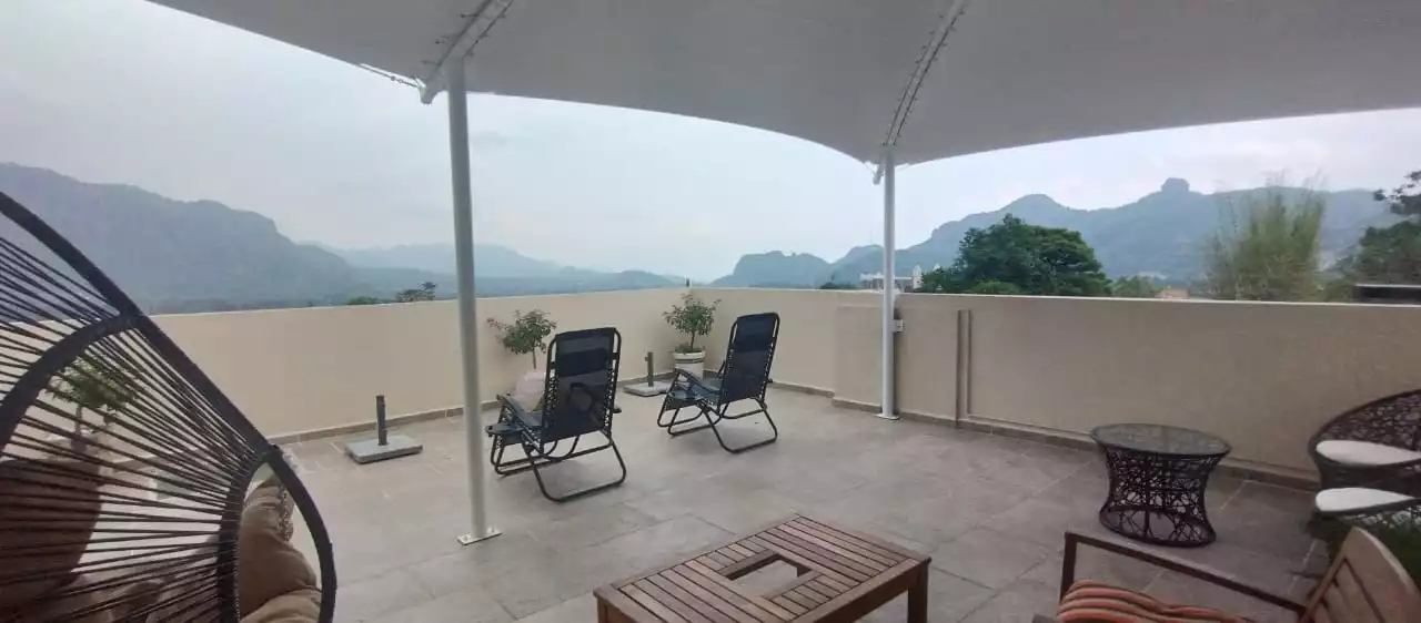 Roof garden con vista a las montañas y a la pirámide